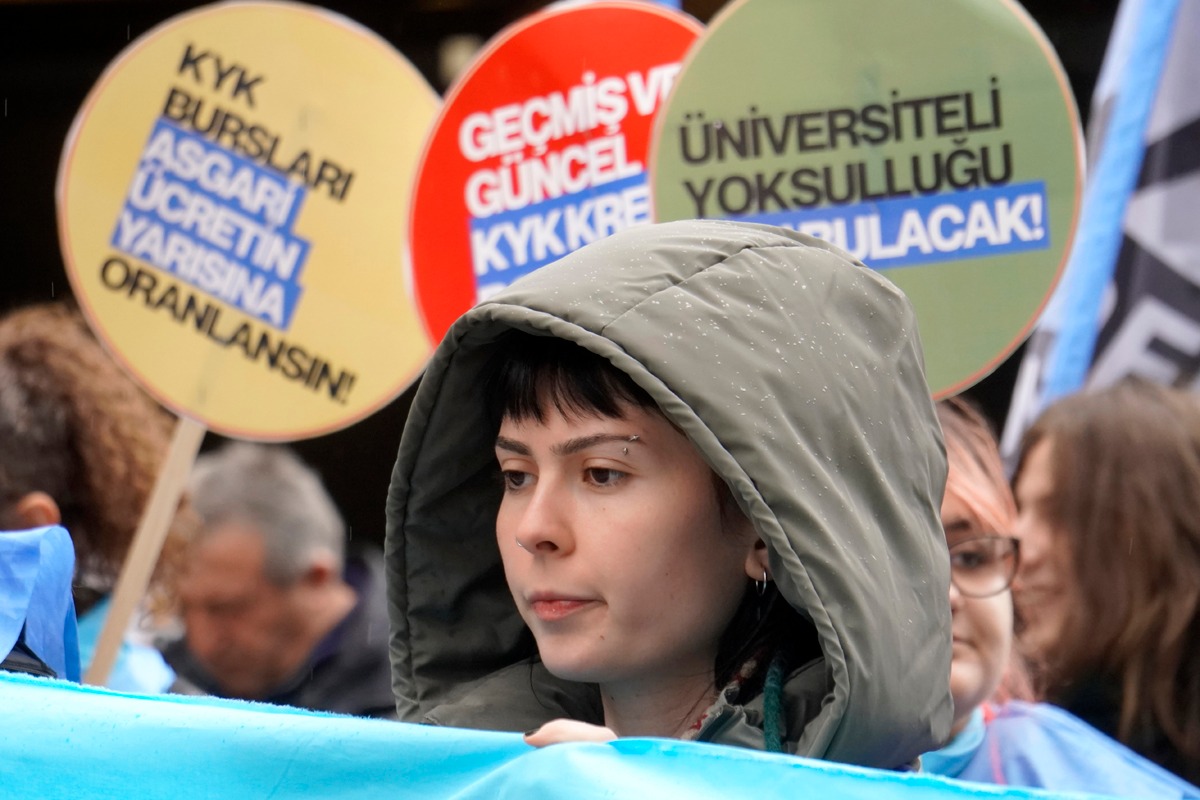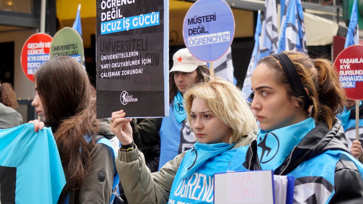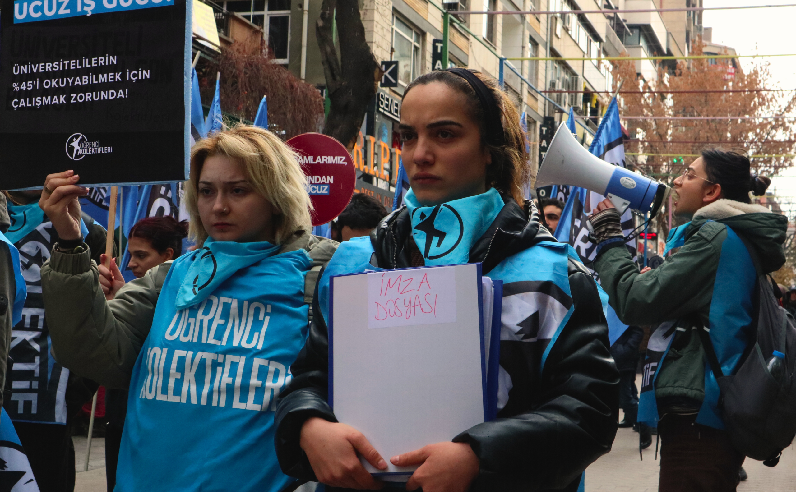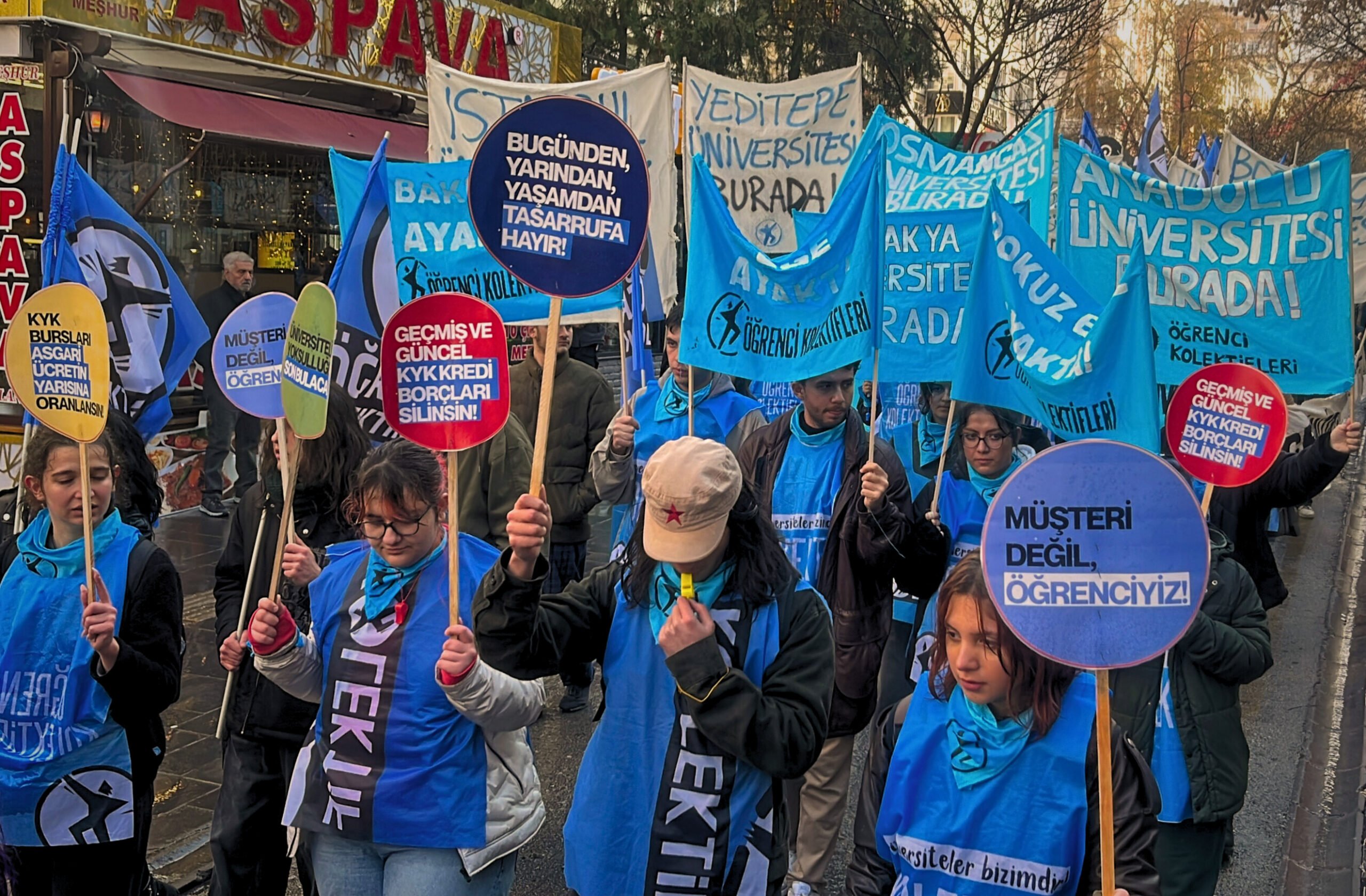 “KYK bursları asgari ücretin yarısına oranlansın” diyen Öğrenci Kolektifleri “Üniversiteli yoksulluğu son bulacak” kampanyası kapsamında topladıkları imzaları Meclis’e götürmek üzere yürüdü. Polisin engelleme girişimlerine ve saldırılarına rağmen üniversiteliler eylemlerini Ankara sokaklarına yaydı