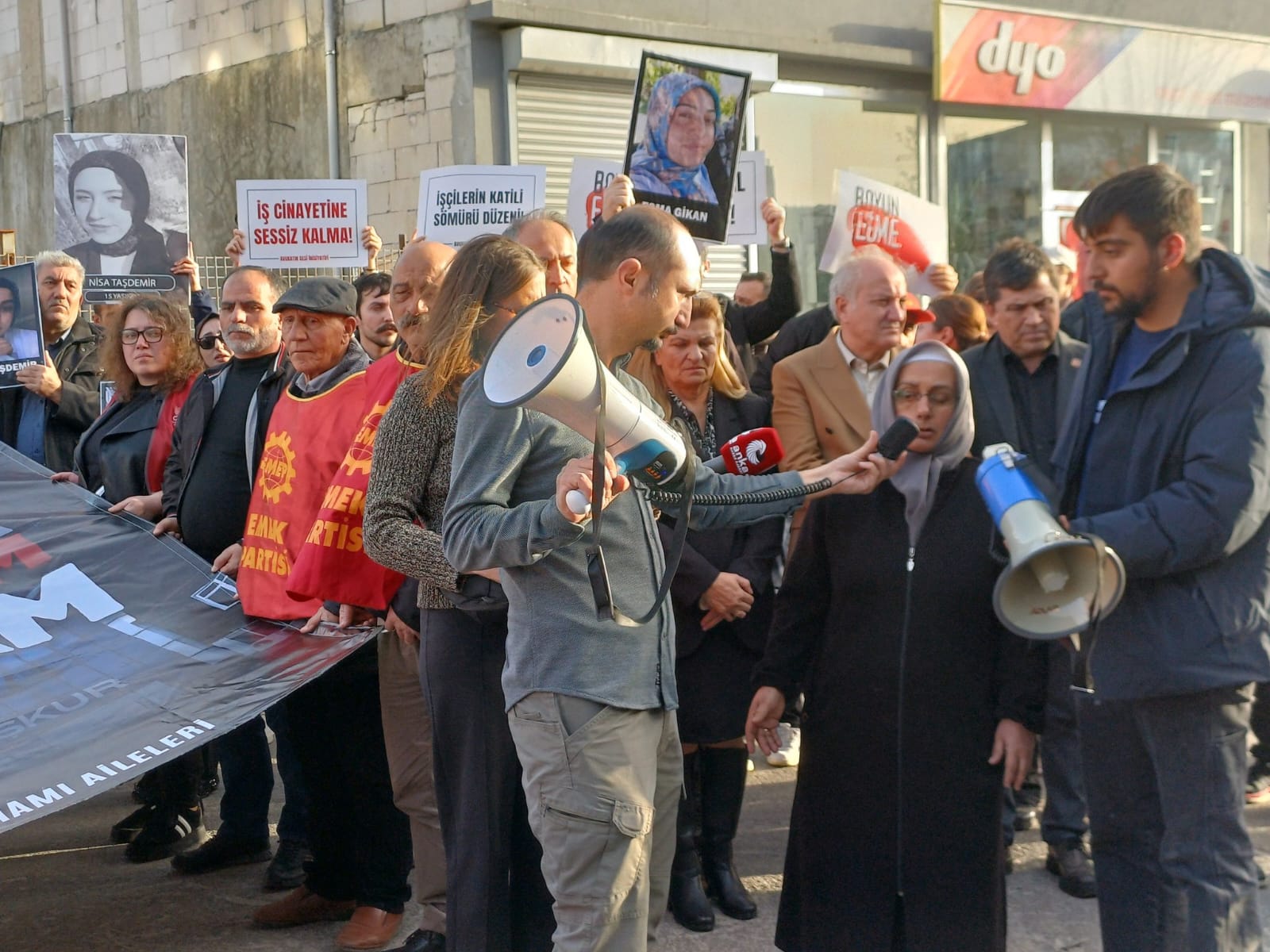 Yüzüncü gün oldu kamu görevlilerinden hiçbir dosya oluşturulmadı. Üç ay içerisinde kamu görevlileri yine görevlerine devam ettiler. Bu işyeri bir sene CİMER’e şikayet edilmiş, yıkım kararı gelmiş yıkmamışlar. Bu canlar gittikten sonra yıkmaya ve delilleri kaybetmeye çalıştılar. Neymiş; risk teşkil ediyormuş. Bu patronlar ne kadar suçluysa, bu kamu görevlileri bunlardan daha çok suçludur. Çünkü patronlara bu kamu görevlileri çalışma izni vermiştir. Depo olarak ruhsat verilmiştir, üretim yapmışlardır. Hangi kurumlar buna izin vermiş; belediyedir, SGK’dır, İSO’dur, elektriktir, bu kurumlar izin vermiş. Bu kurumlar bu iş yerine izin vermese bu çalışabilir mi? Elektrik vermese, su vermese çalışabilir mi, ruhsat vermese çalışabilir mi? Çalışamaz. Soruyoruz, bu kurumlar nerede?