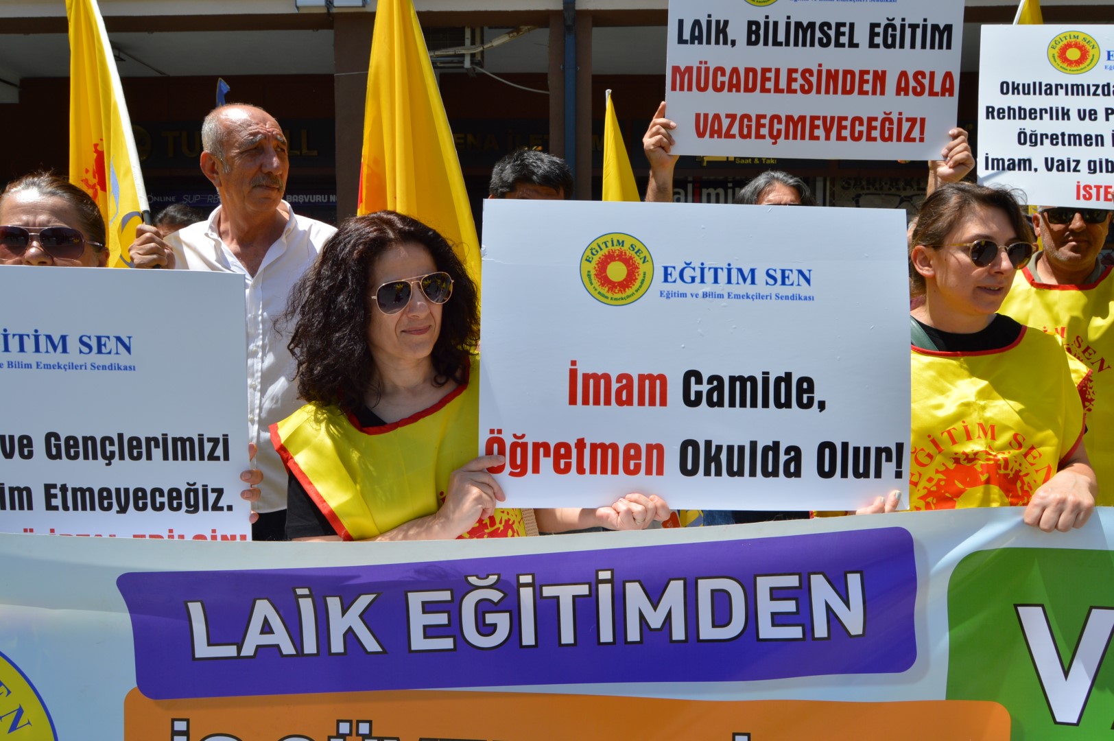 Öğretmenler dayatmaya karşı Milli Eğitim Müdürlüğü önündeydi: “Laik, bilimsel, parasız eğitim istiyoruz”